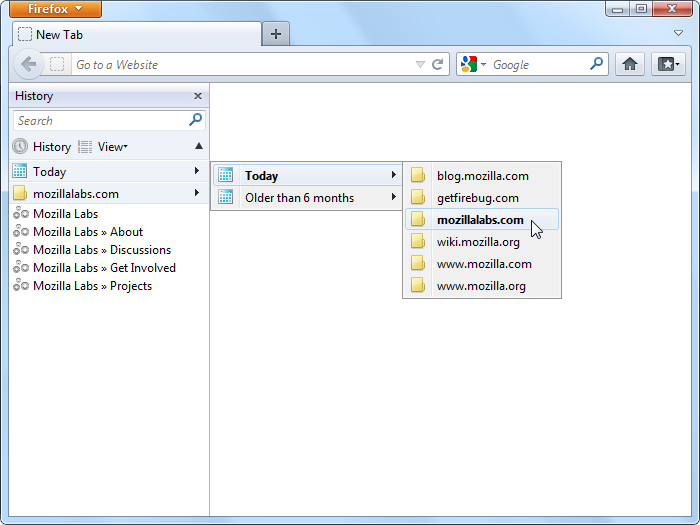 From History button in the History Sidebar, you can quickly access to the root of History. |
