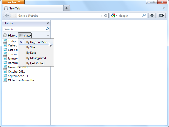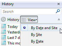 View button is absolutely same as the View button which were normally placed on the left side of the search box. We can change the grouping and sorting modes of history. |