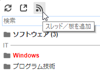 スレッドや板を追加するには、ツールバーの [スレッド/板を追加] ボタンを押してください。現在のタブを追加、またはURLから追加することができます。 スレッドや板が追加されると自動で板(フォルダ)が生成され、その中へスレッドが配置されます。 |