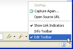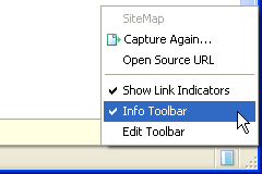 When viewing a captured page, you can show / hide Info Toolbar by clicking |