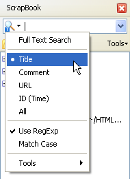 ScrapBook has two searching feature: Filtering Search and Full Text Search. You can change the search method by clicking |